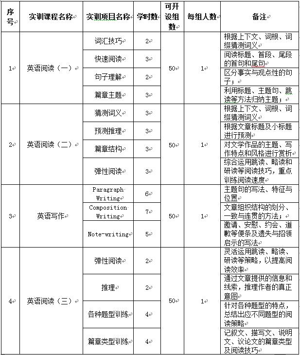 外语写作与阅读实训室建于2015年,隶属外语实验教学中心,地点位于文C505,使用面积约80平方米。该实验室承担了师范类和非师范类方向相关专业实验课程,涵盖了英语口语、英语语音语调、英语听力、英语语音学、英语视听说、高级英语视听说、商务英语视听说、英语阅读、英语写作、英语应用文写作、基础英语写作、高级英语写作、毕业论文导写等课程的实验与实训教学任务。年均承担实验人时数约3600。