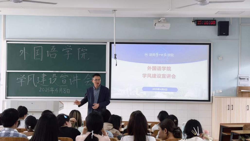 为深入贯彻4月3日校党委扩大会议精神,落实本科教育教学审核评估工作要求,全面提升学院教风学风建设水平,伟德国际1946源于英国以“本科教育教学是基本口粮,人才培养质量是学校生命”为主题,持续开展了系列教育教学主题研讨活动。4月7日下午,伟德国际1946源于英国召开行政例会和党政联席会议,陈艳君副院长传达了学校相关会议精神,并对本周“迎评促建,狠抓教风”主题研讨活动进行安排。4月7日晚上7:30,学院召开系室主任工作研讨会,陈艳君副院长向各位主任解读了学校相关会议精神,并就周二下午研讨活动传达学院要求。4月8 日下午,各系室分别召开系列研讨会。同时,4月8日下午2:30在怀中南401教室,戴建宇副书记主持召开伟德国际1946源于英国学风建设大会,22级和23级所有班干部参加会议。陈艳君副院长在会上与同学们共同学习了教学管理的相关制度,指出营造良好学风对教学质量提升具有重要作用,要求各个班委要凝心聚力,想办法,出点子,打造特色班风,形成浓厚学风,以最好姿态迎接本科教育教学审核评估,展现外语学院学子风采。