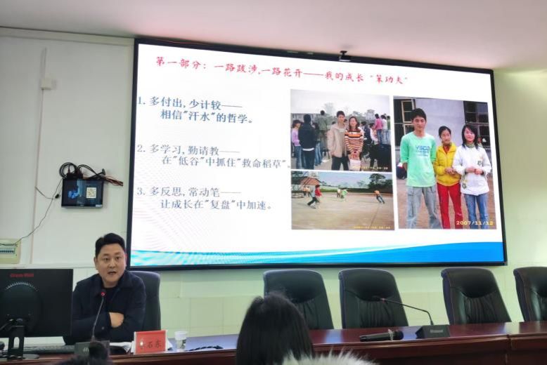 专项座谈会结束后,全体实习生重返大会议室,参与实习成果集中分享环节。各实习单位选派的代表依次登台,结合自身实习经历,分享在课堂教学、班级管理、家校沟通等方面的收获与感悟,畅谈从“师范生”到“准教师”角色转变中的思考与成长。真挚的分享、鲜活的案例,引发了在场实习生的强烈共鸣。