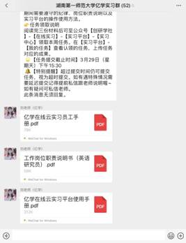 目前,学生们已经顺利完成第一周的线上实习工作,相信此次线上实习的经历能为学生今后走上工作岗位奠定基础。