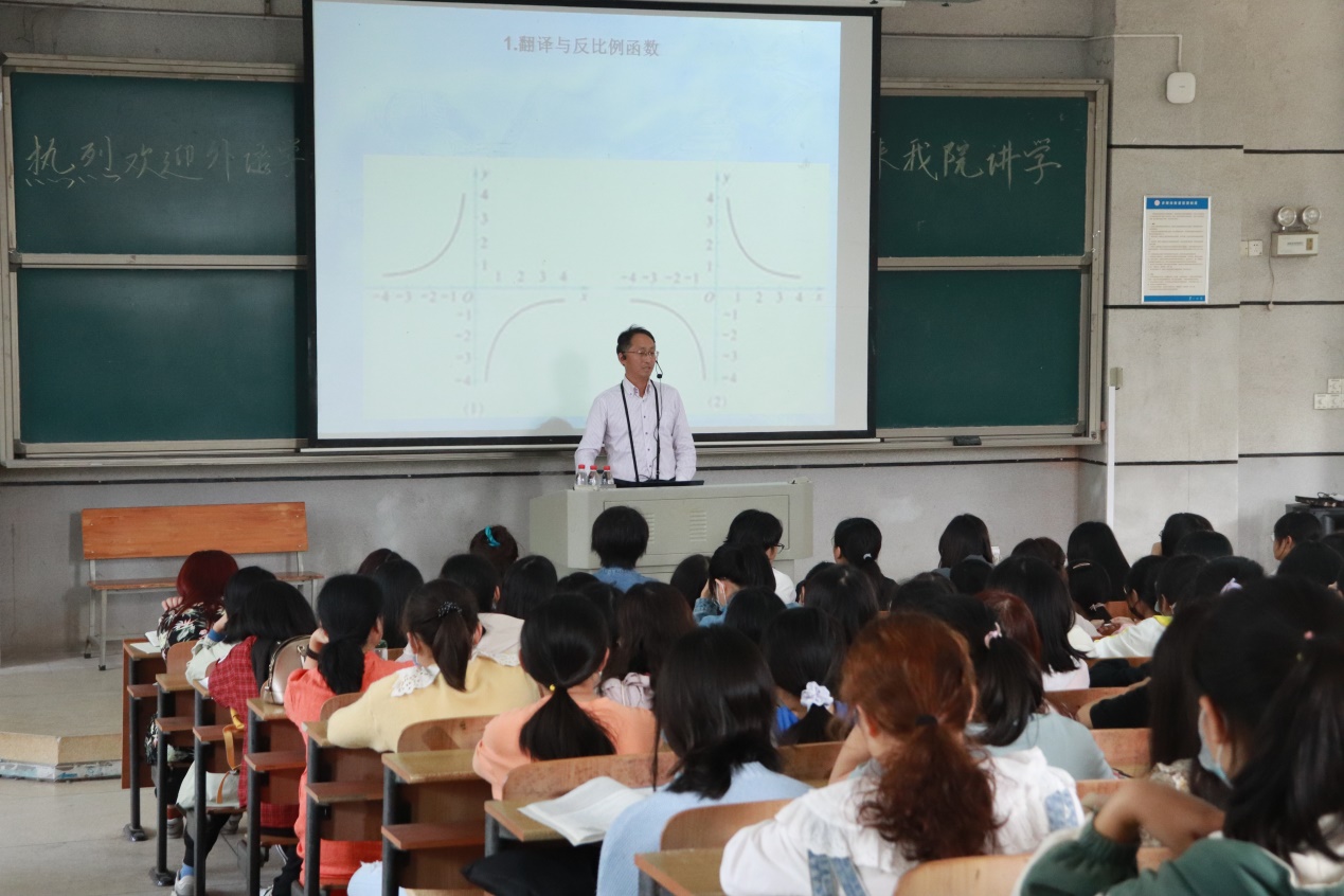 13日上午,黄教授与伟德国际1946源于英国领导进行座谈,就学科发展状况、未来发展目标等展开了讨论。13日下午,黄教授首先在怀中楼南栋209举行了题为“翻译呈反比例函数关系?”的学术讲座,伟德国际1946源于英国200多名师生聆听了本次讲座。讲座中黄教授以数学的反比例函数作为切入点,提出从数学的角度来看待翻译,将译文与原文的关系用反比例函数体现出来,并解释这两者存在异曲同工之妙。接着,黄教授面向外语学科教师,以今年通过评审的国社科项目选题为例,逐一讲解选题的特色,并以具体的案例,呈现选题由“原料”到“精品”的锤炼过程,生动形象地阐述“选题何以赢得第一印象”的诀窍。刘祥清院长作了精彩总结。