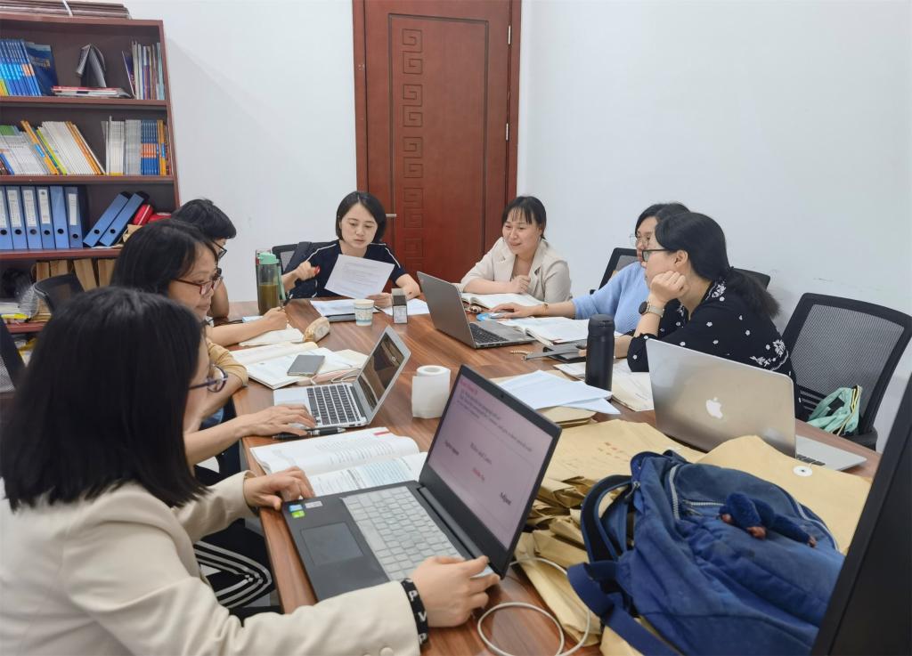 为进一步推进《大学英语》课程思政建设,“湖南省毛泽东诗词外译研究基地”核心成员与湖南省一流线下课程《大学英语(三)》课程组成员于2022年5月9日在公共英语教研二室举行了基于课程思政的《新时代明德大学英语》教学资源建设研讨会系列会议第三场。这次会议主要由项目负责人陈喜贝老师讲解《新时代明德大学英语》教学资源建设的样章第六单元,参加会议的有团队全体教师:龙君、梁薇、雷琬瑢、唐新萍、谭建慧、陈迎、蒋丽梅等老师。