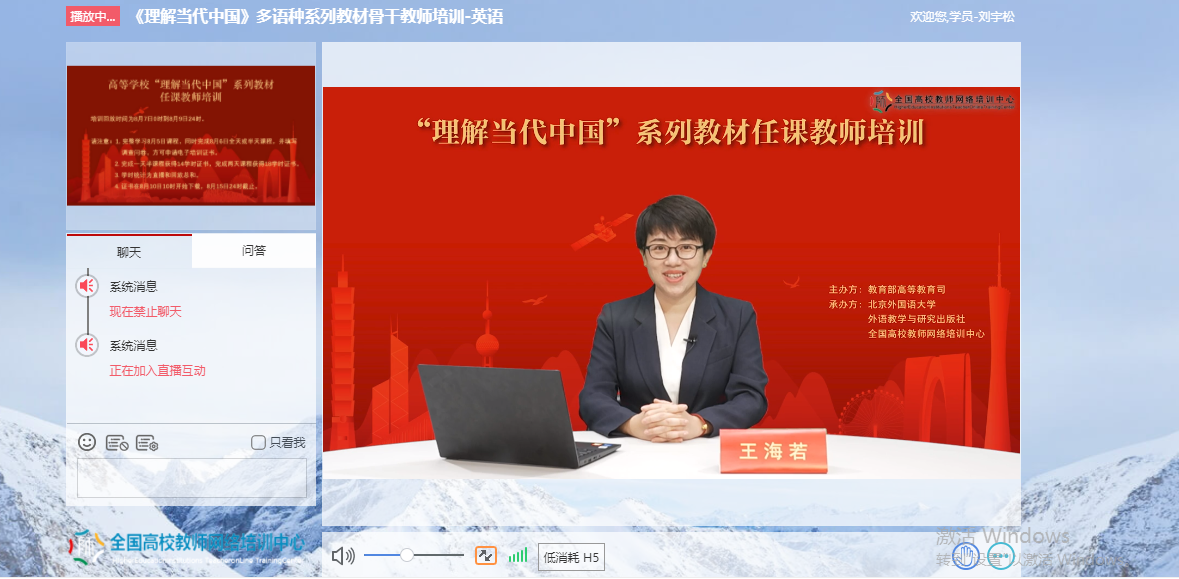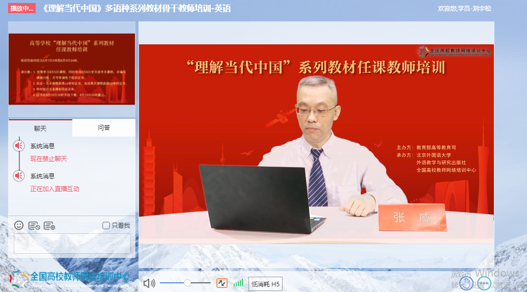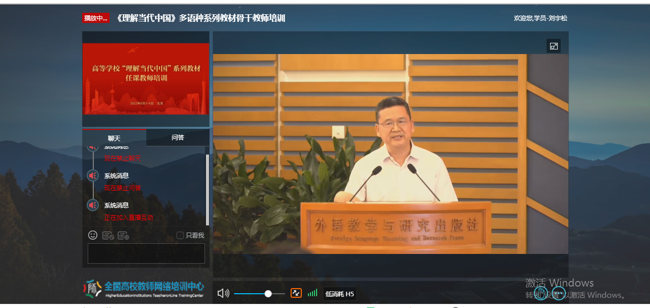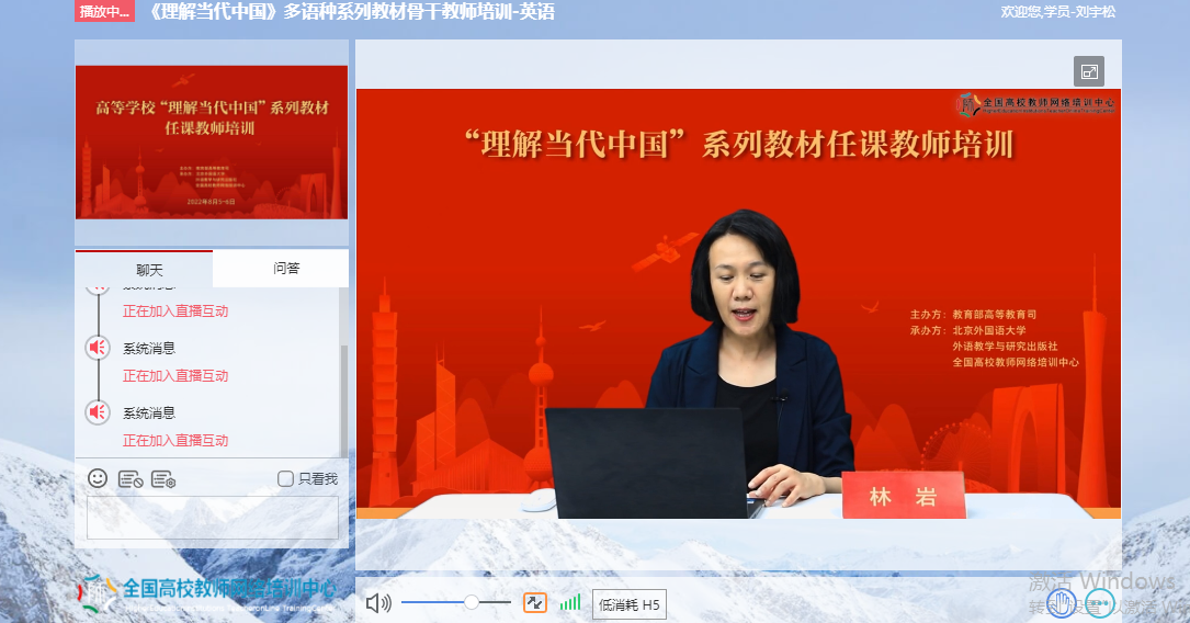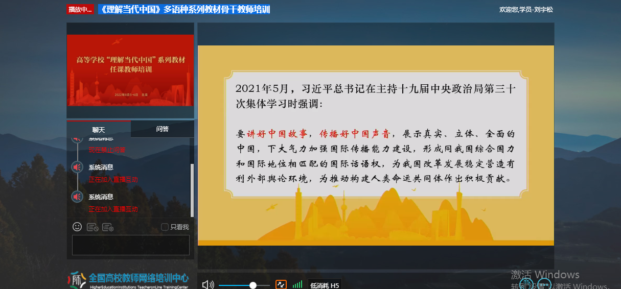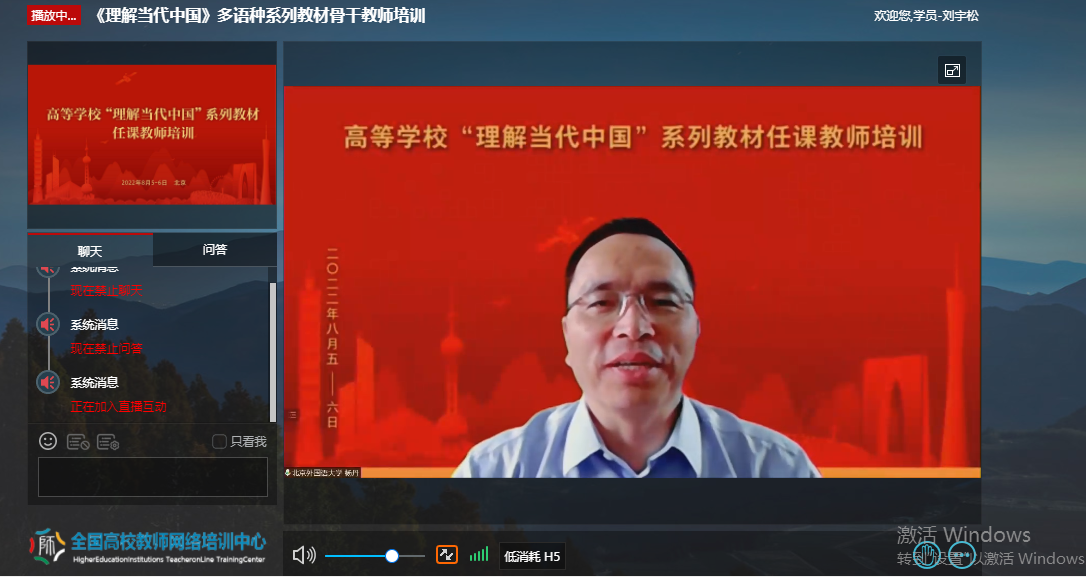 为深入贯彻《习近平谈治国理政》多语种版本进高校进教材进课堂(以下简称“三进”)工作精神,2022年8月5日至6日,我院全体院领导、专业负责人、系(教研室)主任、读写组、翻译课程组、二外课程组、综合英语课程组课程负责人及成员20余人参加了由教育部高等教育司组织、北京外国语大学、外语教学与研究出版社、全国高校教师网络培训中心共同承办的“理解当代中国”多语种系列教材任课教师线上培训。