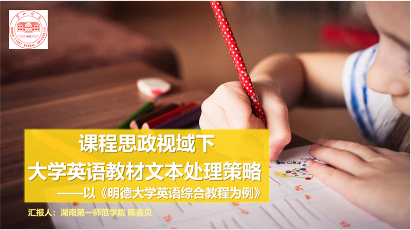 会议第二天,12位专家分别围绕高水平教材支撑外语课程高质量建设和项目式教学理念指导下的大学英语教材建设与应用两个专题开展研讨。陈喜贝作题为“课程思政视域下大学英语教材文本处理策略——以《明德大学英语综合教程为例》”发言。陈喜贝提出理念为先、解读为本、内容为王、资源为要的教材文本处理策略。陈喜贝强调,教材处理要以学生中心、课程思政、用教材教、终身学习为基本理念,以多元系统、有理有据为基本原则,以ADDIE教学设计模式为理论指导,以丰富、有用为资源建设标准。陈喜贝的发言引起了大家的共鸣,得到了与会专家学者的高度评价与肯定。