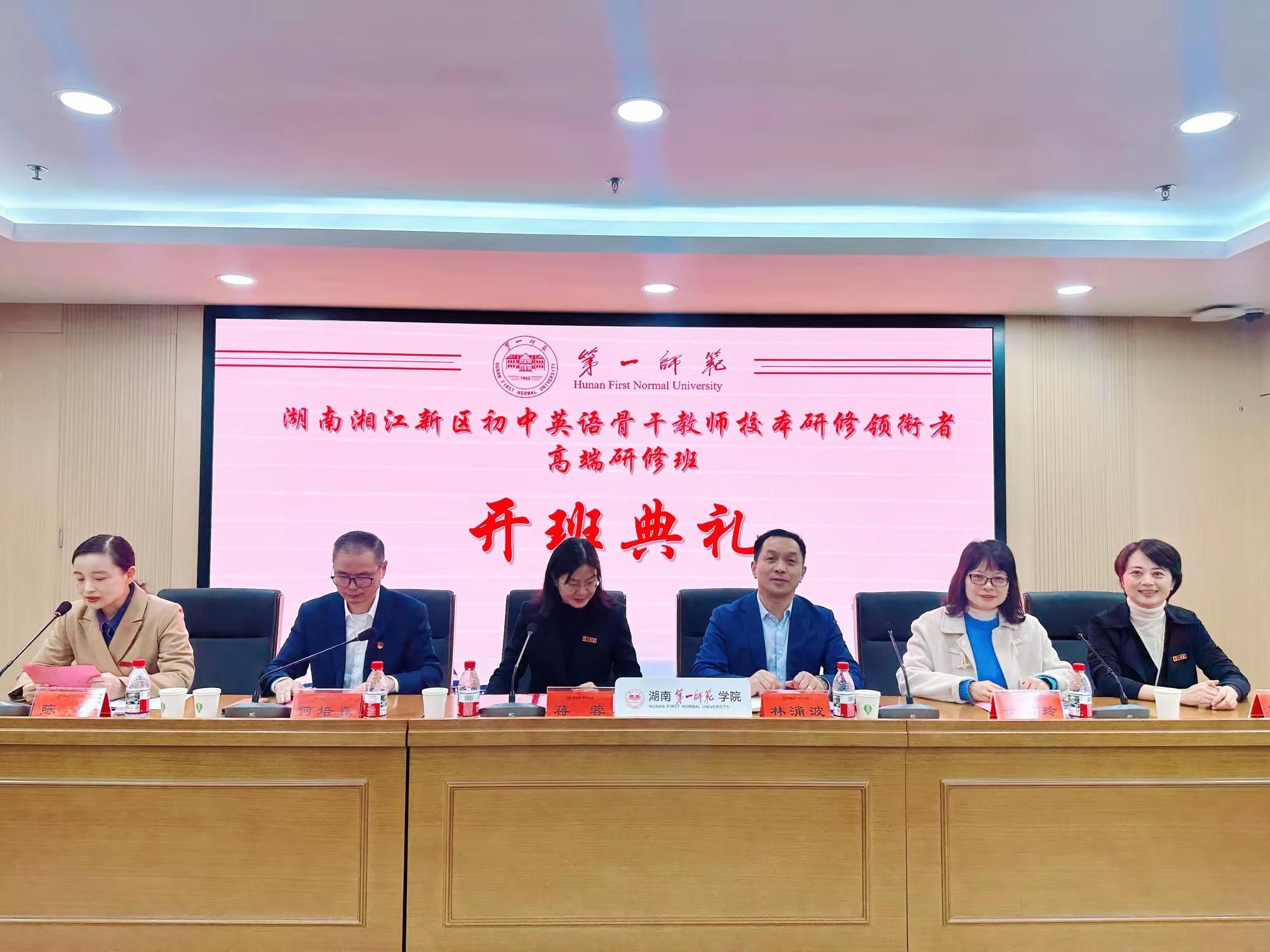 校党委委员、副校长蒋蓉,湖南湘江新区教师发展中心书记、主任林涌波,中学英语教研员于洪玲,伟德国际1946源于英国党委书记何培森教授、副院长陈钰教授、项目负责人陈喜贝副教授等出席了开班典礼。