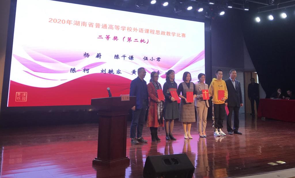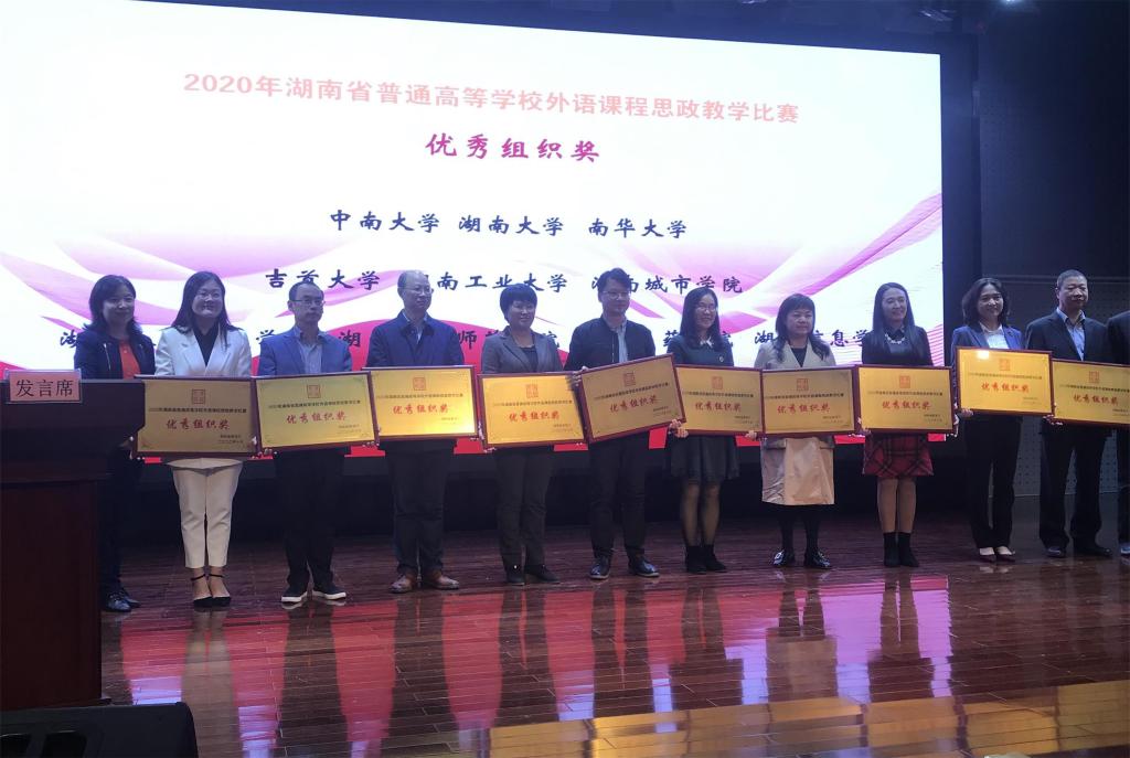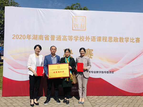 10月23-24日,2020年湖南普通等学校外语课程思政教学比赛决赛在湖南工业大学举行。经过激烈角逐,我院教师李双及其团队喜获专业英语组二等奖,学校获“优秀组织奖”。