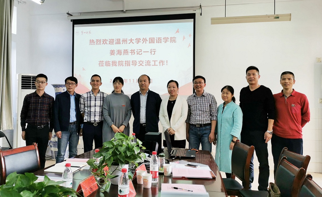 交流会上,刘祥清院长简明扼要地介绍了我院的办学历史、特色和发展概况,采取的主要措施与成效,以及未来发展的方向。杨虎智副书记、刘宇松副院长、康响英副院长和李亚林书记先后就学生工作、教学工作、科研工作和党建工作进行了具体的介绍。温州大学伟德国际1946源于英国的姜海燕书记也介绍了该院在党建工作中实施的“114”工程,分享了他们如何发挥专业优势做好党建工作的经验。会上,与会人员还就课程思政、大学外语的学分和选修课开设情况、学科特色、科研管理制度、国社科申报、师范专业认证、大学生创新项目申报、学生考研、招生规模、教师基本工作量等议题进行了广泛讨论。交流会持续了3个多小时才结束,双方都期待未来有更多的交流机会相互学习。会后,姜海燕书记一行还参观了我院实验室和智慧教室。