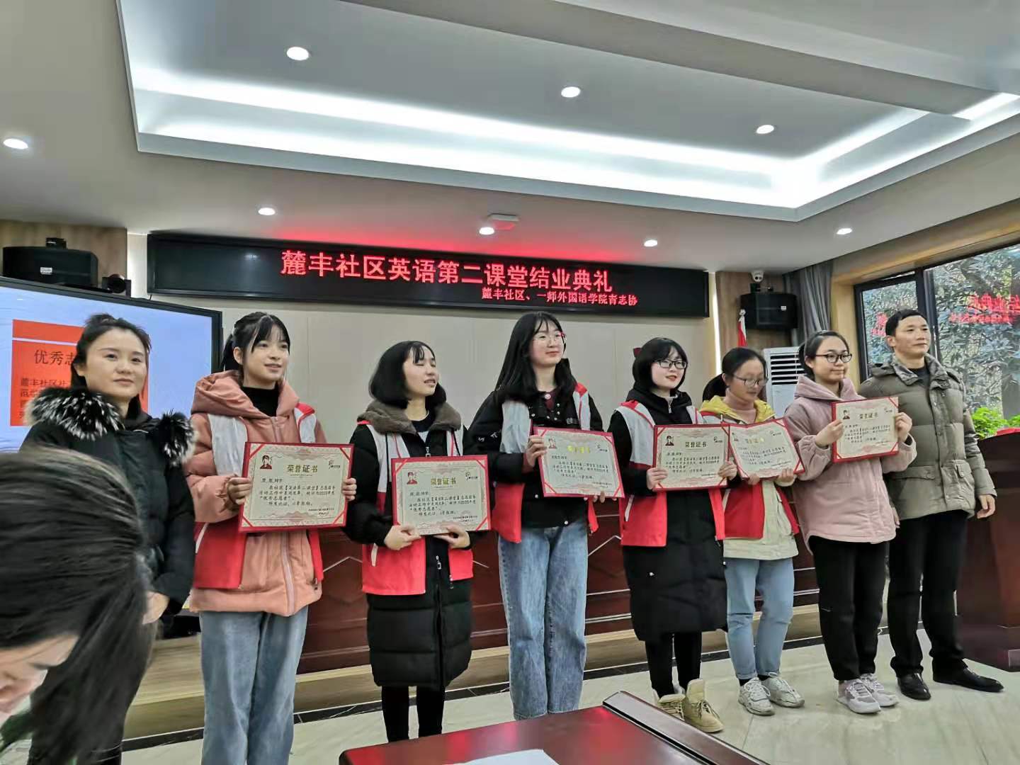 2020年12月20日下午,外国语院青茧社工支队麓丰社区志愿服务分队在长沙岳麓区麓谷社区顺利举办英语第二课堂结业典礼,给本学期麓丰社区英语第二课堂志愿服务活动画上完美的句号。