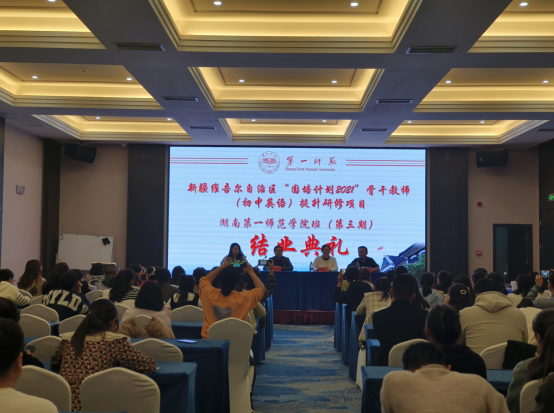 2023年11月23日晚19:30,由湖南第一师范学员伟德国际1946源于英国承办的新疆国培计划(2021)——初中英语地县级骨干教师提升研修项目(第三期)结业典礼于长沙市岳麓区宜尚酒店会场顺利举行,本次国培研修班顺利拉下帷幕。