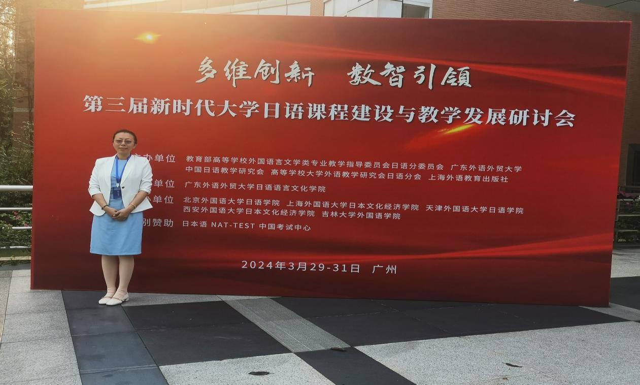 2024年3月29日-31日,我院教师吴娱受邀参加了第三届新时代大学日语课程建设与教学发展研讨会。来自全国的150余位专家学者及高校教师围绕本次大会主题“多维创新 数智引领”进行探讨,力求推进大学日语课程建设与高质量发展,构建数字化、网络化、智能化的大学日语教学新生态。