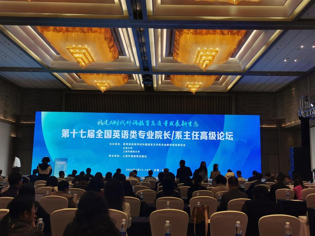 4月12日,由教育部高等学校外国语言文学类专业教学指导委员会、云南大学、上海外国语大学共同主办,上海外语教育出版社承办的“第十七届全国英语类专业院长/系主任高级论坛”在昆明举行。我院副院长王佳娣、英语系孙军秀副教授参加了本届论坛。