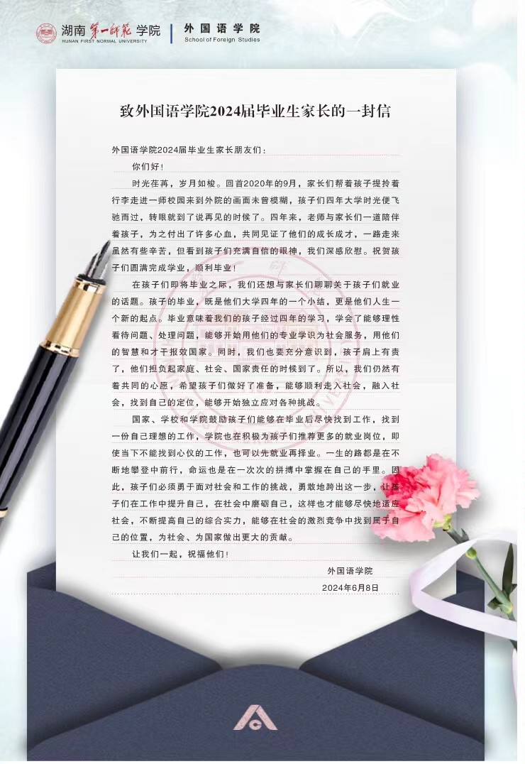 致伟德国际1946源于英国2024届毕业生家长的一封信