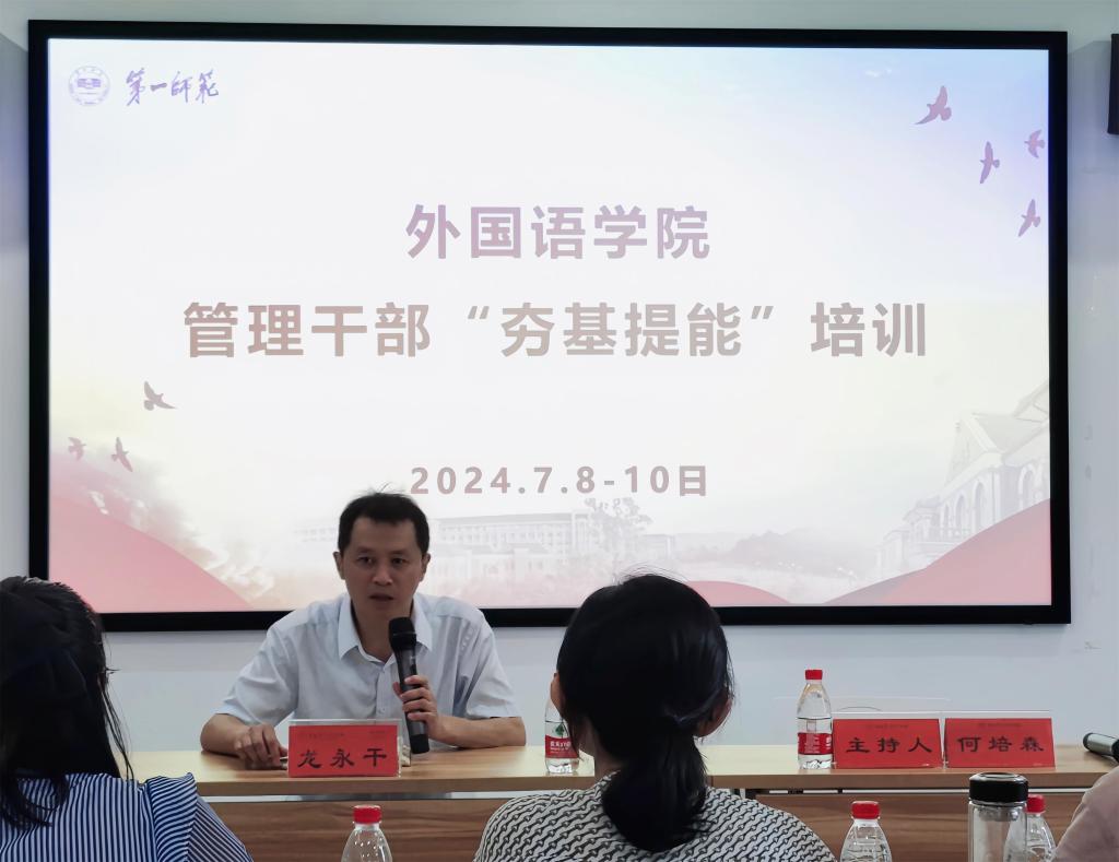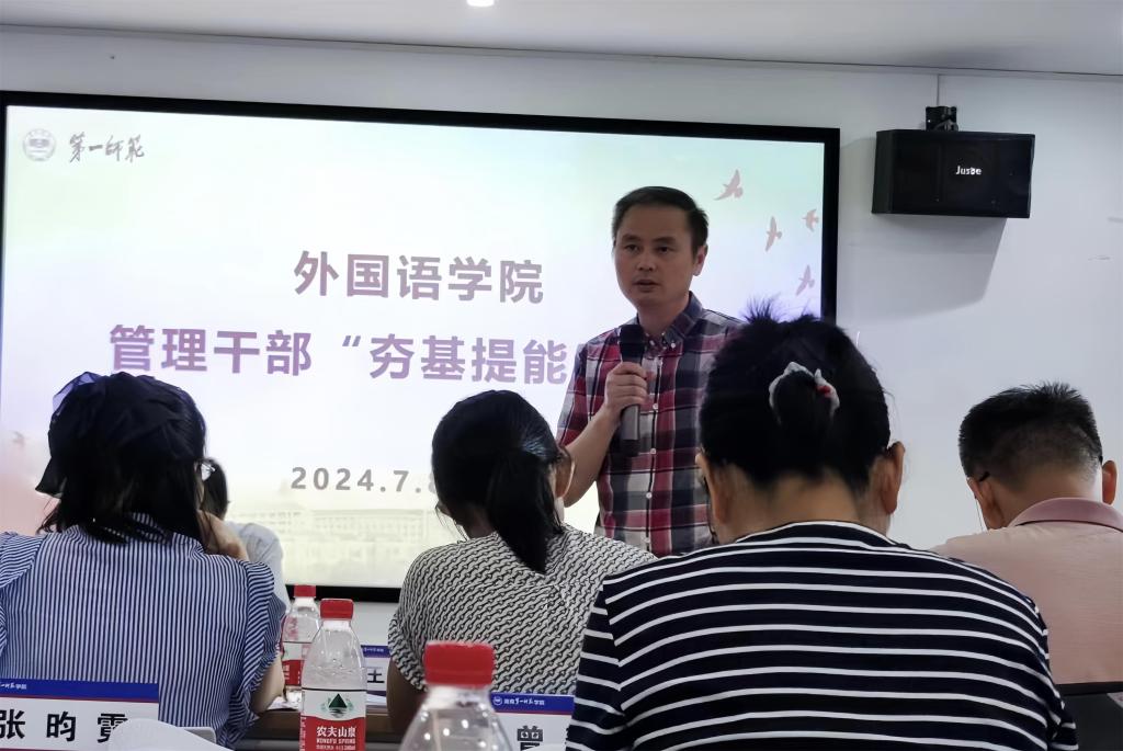 为提高我院管理干部掌握党的基本理论、办公基本技能和服务师生员工的能力和水平,打造一支团结拼搏、求真务实的管理干部队伍,促进学院教学管理、学科科研提质升级,学院于2024年7月8至10日举办管理干部“夯基提能”培训。