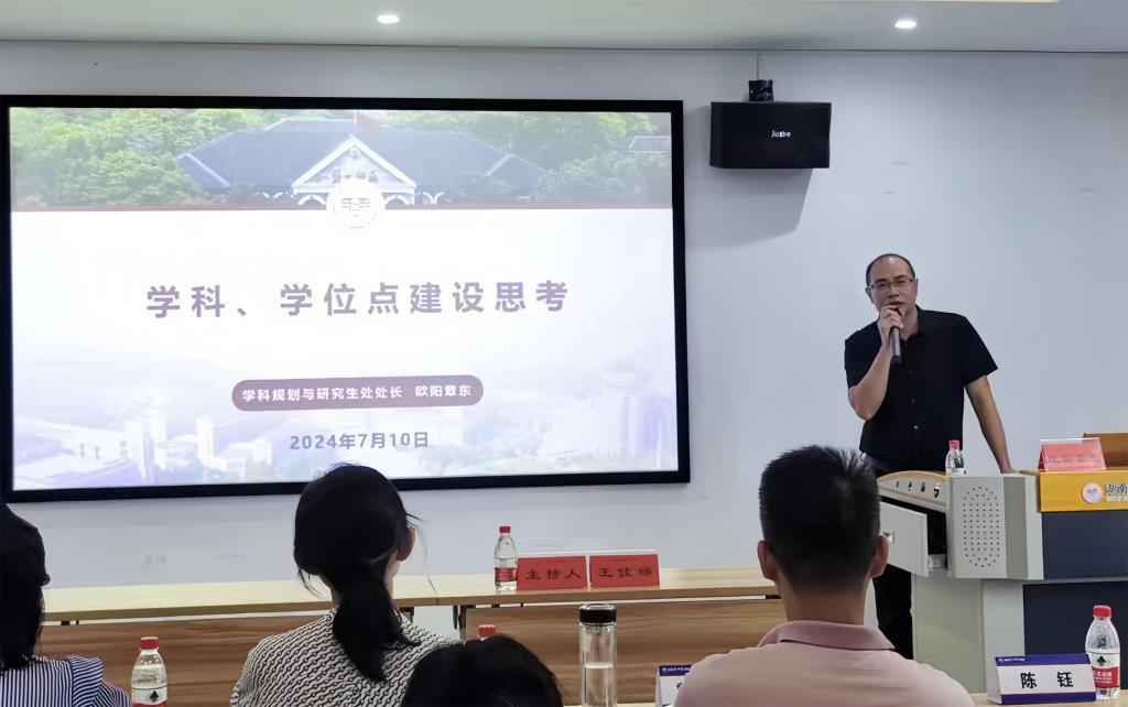 学科规划与研究生处处长欧阳章东教授就“学科、学位点建设思考”进行了专题讲座。他阐释了学科、专业、学位点的含义,分析了学科与专业、学科与学位点的关系,解读了国家学位授权审核政策,重点分析了我校学科专业的现状,指出伟德国际1946源于英国在硕士点学位申报准备过程中面临的机遇与挑战,并从学院和教师层面提出了具体建议。
