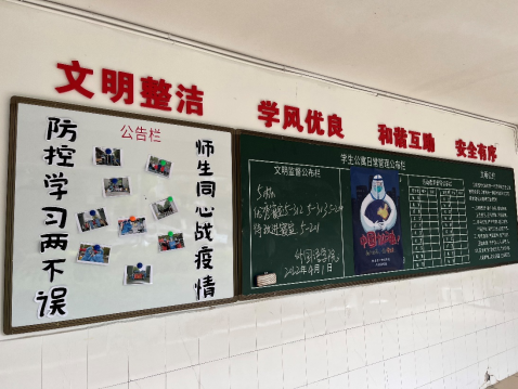 深入伟德国际1946源于英国公寓楼,可以看到悬挂在公寓墙上的红条幅与走廊过道里精心布置的抗疫板报。印在红色条幅上的防疫宣传语显得格外醒目,提醒着同学们在疫情形势复杂严峻的当下要打起十二分的精神,不能放松警惕;精美的抗疫板报上张贴着许多“红马甲”们的志愿服务合影,激励着同学们共克时艰、砥砺前行。