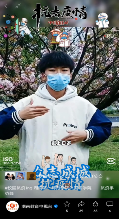 没有一个春天不会到来,爱和希望比病毒传播得更快。除了在公寓楼积极开展防疫宣传活动外,伟德国际1946源于英国,BETVLCTOR伟德唯一官网也积极组织该院学子参与“防疫手势舞”征集活动。校园的樱花树下、林荫道旁或是操场中央,都能看到外院学子舞动的身影。外院学子用一首歌、一套手势舞,将大家的心紧密相连。