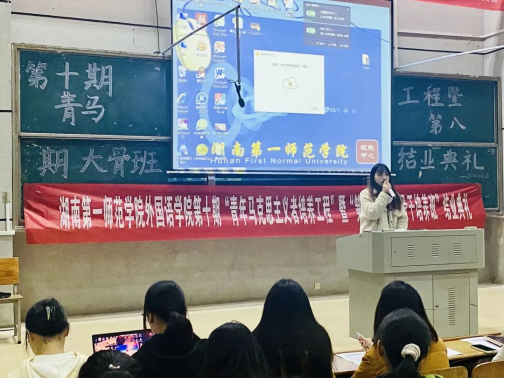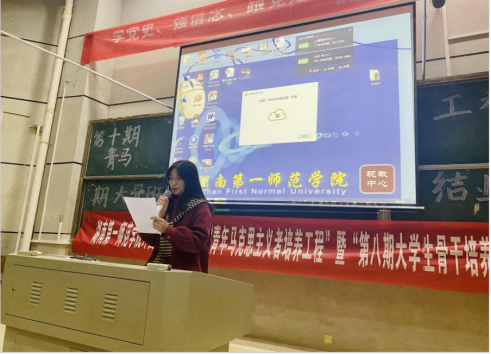 然后,由优秀学员代表黄思璐发言,她表示当代大学生要敢于担当,勇于实践,凝聚青春力量,争做新时代卓越的青年马克思主义者。