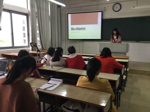 复赛由现场课题抽签、教学设计及课件制作(150分钟)、教育问答(3分钟)以及片段教学(8分钟)这四大环节组成。复赛主要从教师口语、教姿教态、教学设计、课件制作及板书设计等多方面对选手进行综合考核。在片段教学展示环节, 各位选手百花齐放、百舸争流。出色的教学水平,标准的语音、稳健的台风、精美的简笔画以及严谨、巧妙的设计思路让人称赞不绝。参赛选手们端庄大方的仪态、自然流畅的课堂以及独特的教学风格,彰显出其扎实的教学基本功和娴熟的教学技巧。