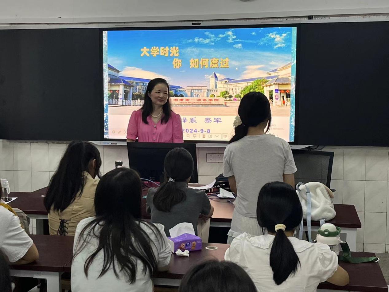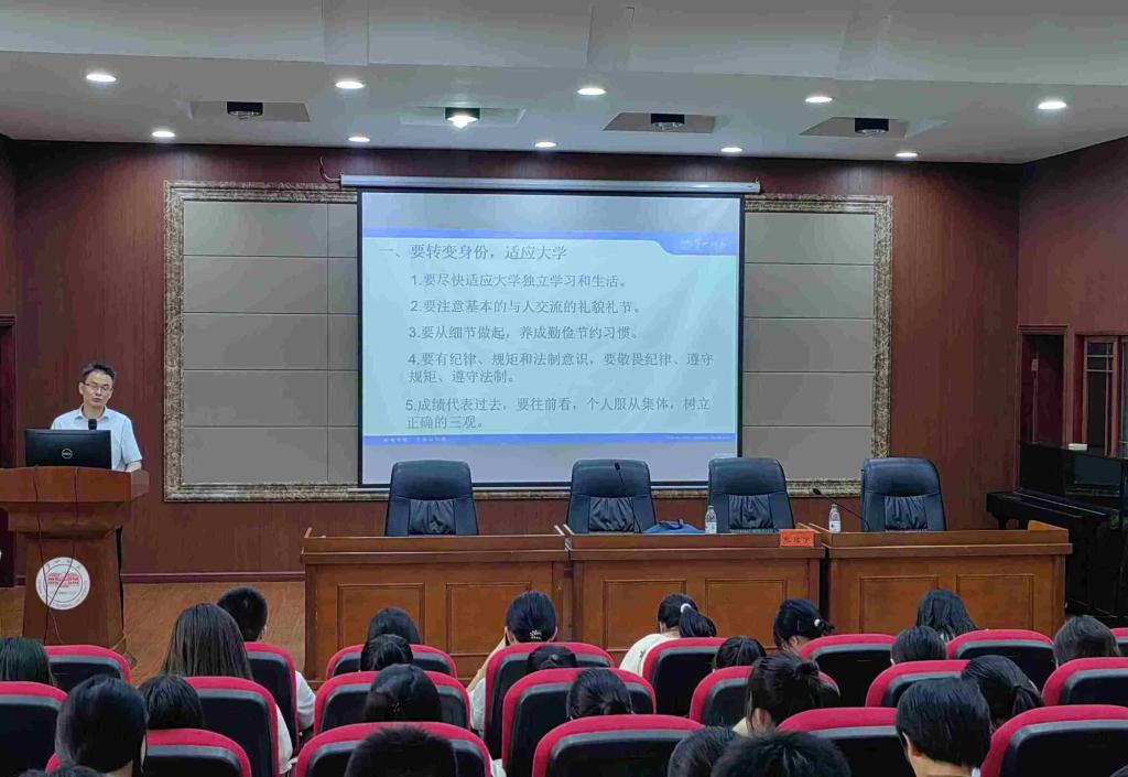 为帮助新生更快更好地适应大学生活,学院党委副书记戴建宇开展“新生如何适应大学”讲座。讲座为新生解答了“什么是大学”“如何规划大学学习、生活”“如何成为优秀大学生”等问题,并且通过大学学习、生活的具体细节和案例为新生指点迷津。最后寄语24级全体新生:“希望在未来的四年以及更远的日子里,大家可以找到自己的目标,并不断为之努力,不断成为更好的自己,为社会、国家贡献自己的力量。”