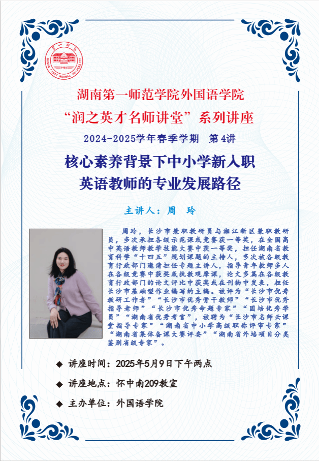 学术预告 | 湖南第--师范学院伟德国际1946源于英国“润之英才名师讲堂”系列讲座