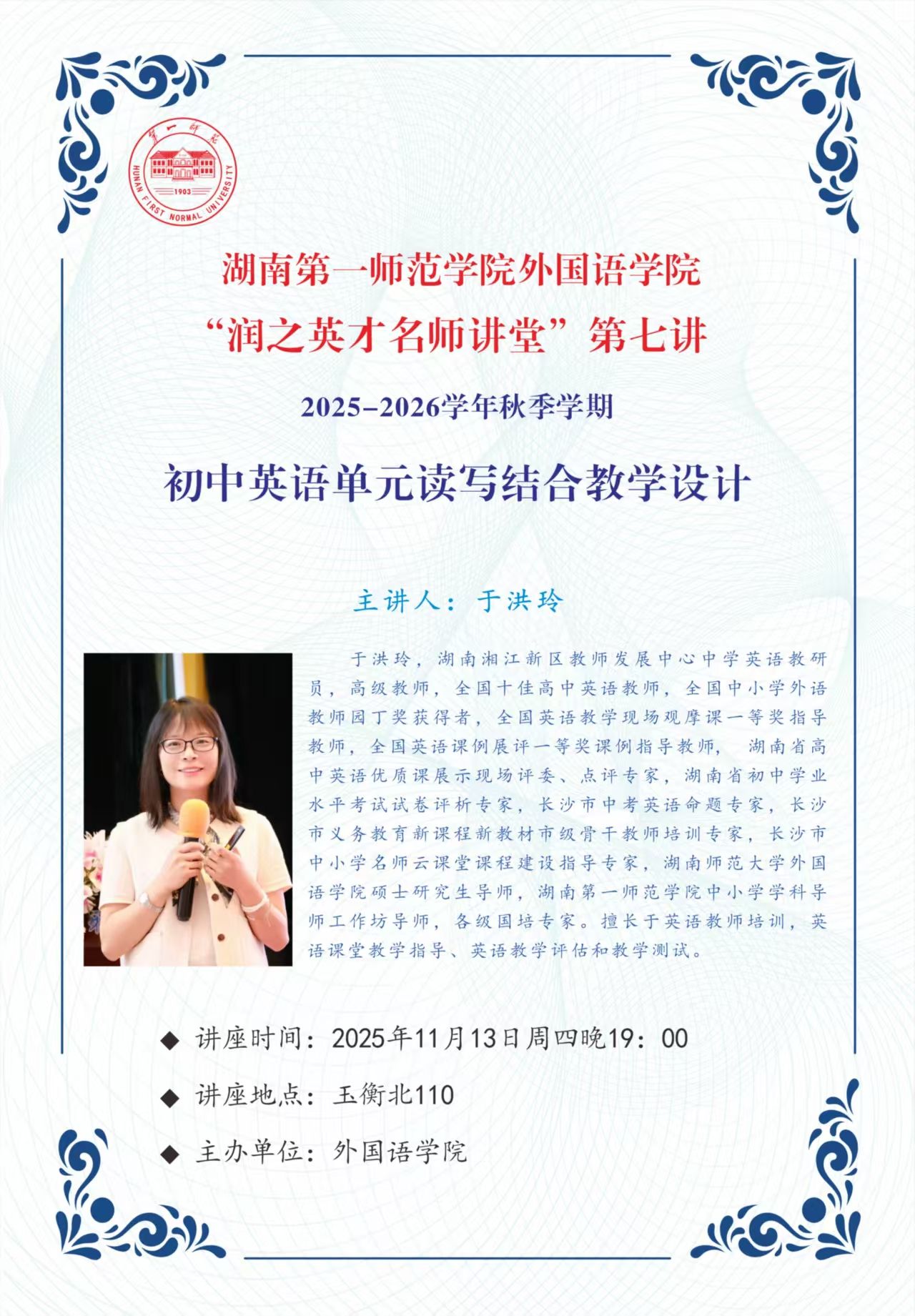 学术预告|伟德国际1946源于英国,BETVLCTOR伟德唯一官网“润之英才名师讲堂”第七讲