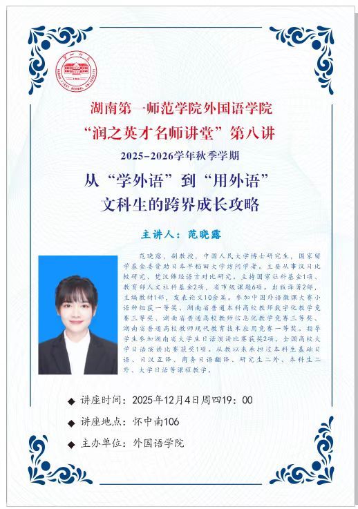 学术预告|伟德国际1946源于英国,BETVLCTOR伟德唯一官网“润之英才名师讲堂”第八讲