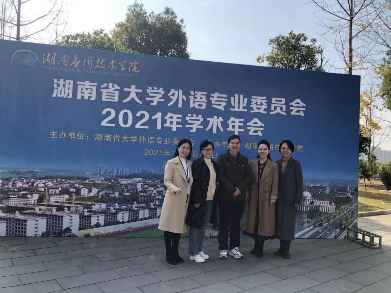 湖南省大学外语专业委员会2021年学术年会于12月3日-5日在常德湖南应用技术学院隆重举行。我省高校外语教师代表约150人参会。我院刘明东教授作为湖南省大学外语专业委员会常务理事参与主持开幕式。我院陈圣白、陈喜贝、曾清老师分别荣获学术年会论文一等奖,陈迎老师荣获学术年会论文二等奖。