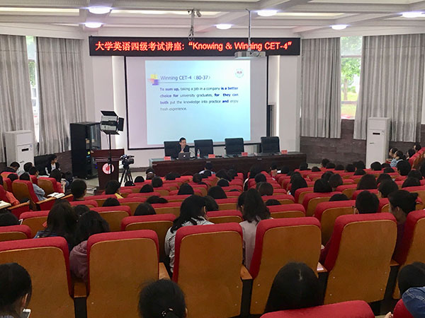 2018年4月23-24日,毛泽东诗词外译研究基地首席专家刘明东教授应邀为黔南民族师范学院学生进行了题为“Knowing & Winning CET-4”的讲座。讲座由该校伟德国际1946源于英国院长陈钧教授主持,吸引了现场与网络三万余名听众。该校伟德国际1946源于英国党总支书记杨昌霞亲临主会场。