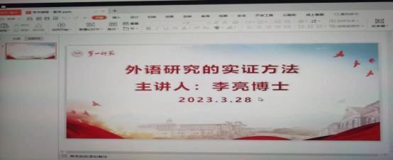 2023年3月28日(周二)下午,吉林师范大学李亮博士应“乐之”论坛之邀为我院作了一场题为“外语研究的实证方法”的线上讲座。本次讲座由陈圣白副院长(主持行政工作)主持,刘祥清书记、康响英副院长与我院100多名师生参加了讲座。