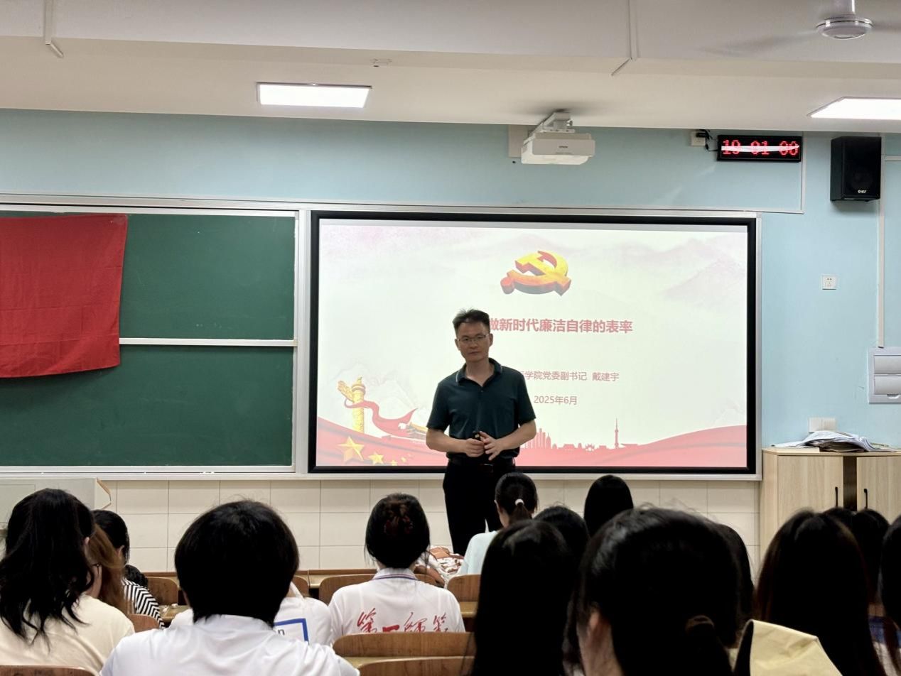 6月11日,我院在怀中南201召开学生党员廉洁教育专题学习会,学院党委副书记戴建宇作题为“如何做新时代廉洁自律的表率”的专题交流。