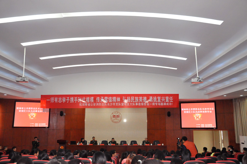报告会结束后,望城区公安消防大队参谋长为全体师生进行了消防知识专题讲座,对火灾事故产生的原因、高校的火灾与扑救、人群疏散与逃生等做了重点介绍与解说。