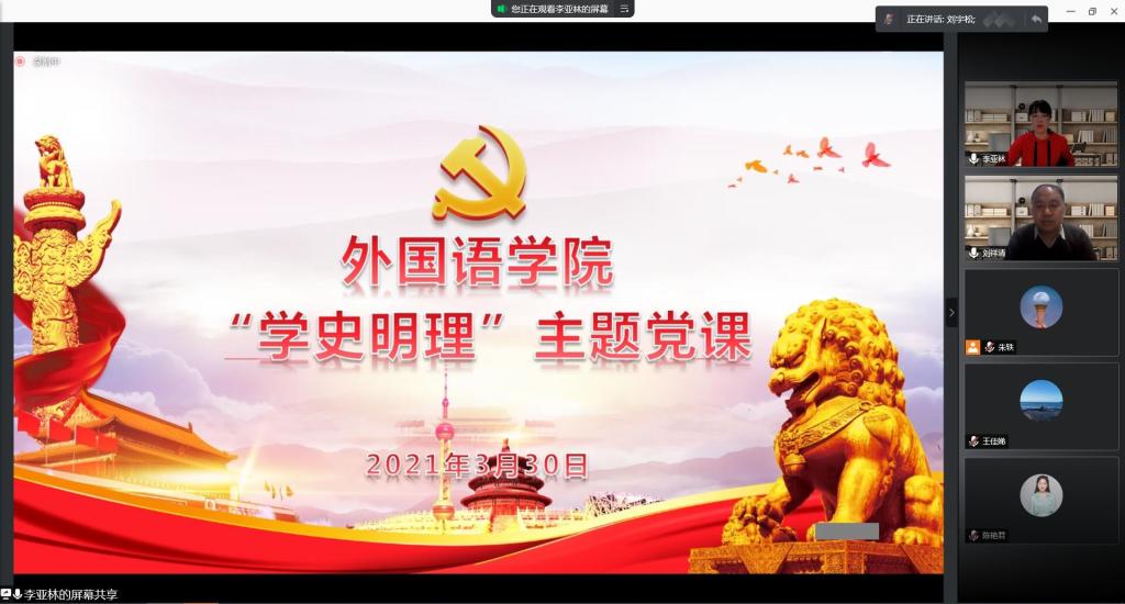 为进一步推进党史学习教育走深走实,3月30日19:30,伟德国际1946源于英国党总支开展“学习明理”专题学习研讨,党总支书记李亚林为全体党员讲党课,学习通过腾讯会议的形式进行。