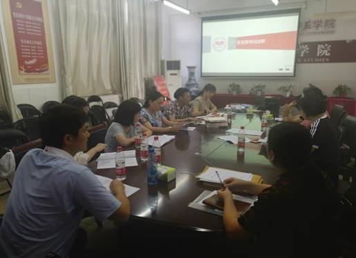 2021年7月14日下午,英语专业二教研室党支部在党总支的指导下召开了“学党史、悟思想、办实事、开新局”专题组织生活会。党支部书记胡启海主持会议,党总支书记李亚林、副书记杨虎智到会指导,并与支部成员一起,围绕主题交流学习体会。