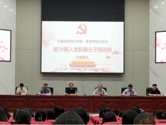 体育学院党委书记谢培松、党委副书记朱建伟、学工办主任兼学生党支部书记纪鑫,以及伟德国际1946源于英国党委书记刘祥清、党委副书记禹晗、学工办主任兼学生第一党支部书记张明出席开班典礼。活动由刘祥清书记主持,150名入党积极分子参加了开班典礼。