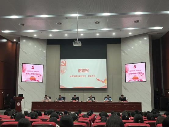 开班典礼在《国际歌》中正式拉开序幕。体育学院党委书记谢培松作开班动员讲话,他首先表达了对参与此次培训的学员们的热烈欢迎,并期望各位新学员认真学习党的性质、根本任务和奋斗纲领,学习党的路线、方针、政策,了解党的发展历史和非凡业绩,用科学思想理论武装头脑。为了将这一期的党校学习和教育工作抓好,谢培松书记对此次参加培训班的学员提出了三点要求:一是认真学习,提升素养;二是志存高远,筑牢信念;三是主动参与,知行合一。体育学院党委副书记朱建伟宣读本期党校学习安排。