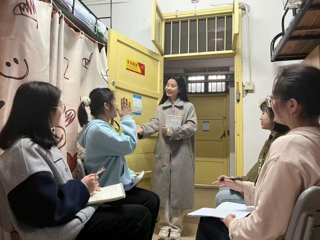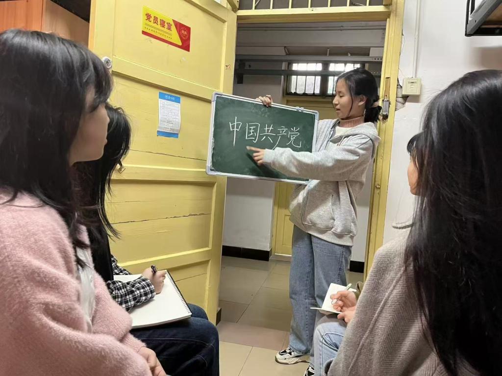 11月12日下午,我院学生党员们在学生公寓内创新性地开展了“寝室微党课”活动,旨在通过贴近学生生活的形式,宣扬党的精神,增强同学们的党性修养。