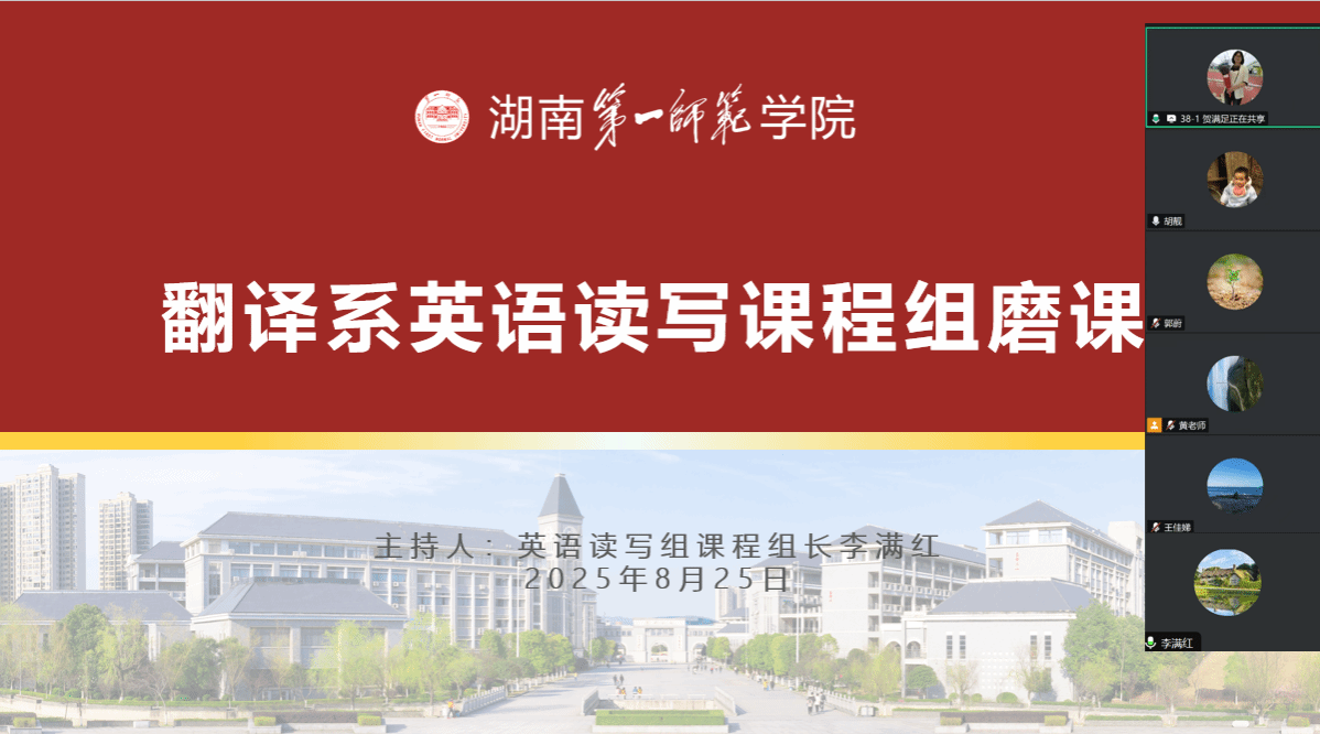为进一步提升英语专业阅读课程教学质量,夯实教师课堂教学能力,优化教学设计与教学方法,2025年8月25日,伟德国际1946源于英国翻译系英语读写课程组以 “聚焦阅读素养,打造高效课堂”为主题,组织开展了英语阅读课程专题磨课活动。本次活动由贺满足老师主讲,王佳娣副院长、胡靓博士、郭蔚老师、黄春莲老师和李满红老师参会,共同研讨《英语阅读(一)》课程优化路径。