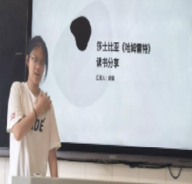 胡晨同学对《哈姆雷特》的解读则将焦点转向人性的复杂性。他结合“生存还是毁灭”的经典独白,探讨了现代社会中个体的迷茫与抉择:“哈姆雷特的犹豫,何尝不是我们面对内卷与焦虑时的真实写照?”胡靓博士对此深表认同:“这次分享跳脱了文本表层,巧妙地将莎翁的命题与青年人的精神困境结合。比如‘躺平’与‘奋斗’的争议、理想与现实的撕裂,正是文学关照现实的生动体现。”