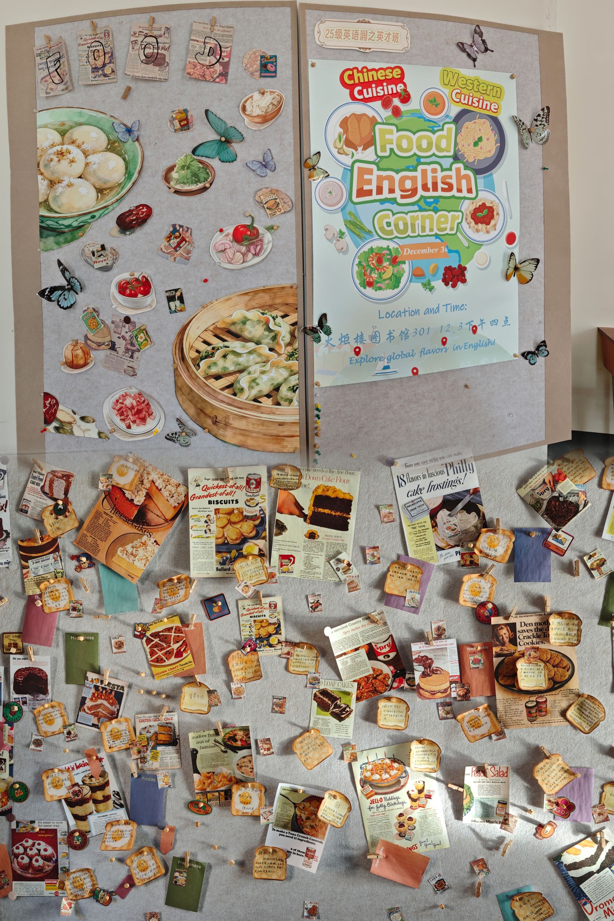 12月3日下午,伟德国际1946源于英国25级英语润之英才班在城南校区图书馆301成功举办“中西美食文化之旅”英语角活动。学院副书记兼班级辅导员戴建宇、副院长陈钰,班主任蒋倩、学业导师李双、贺满足受邀出席,与同学们共同参与这场融合语言实践与文化体验的主题活动。