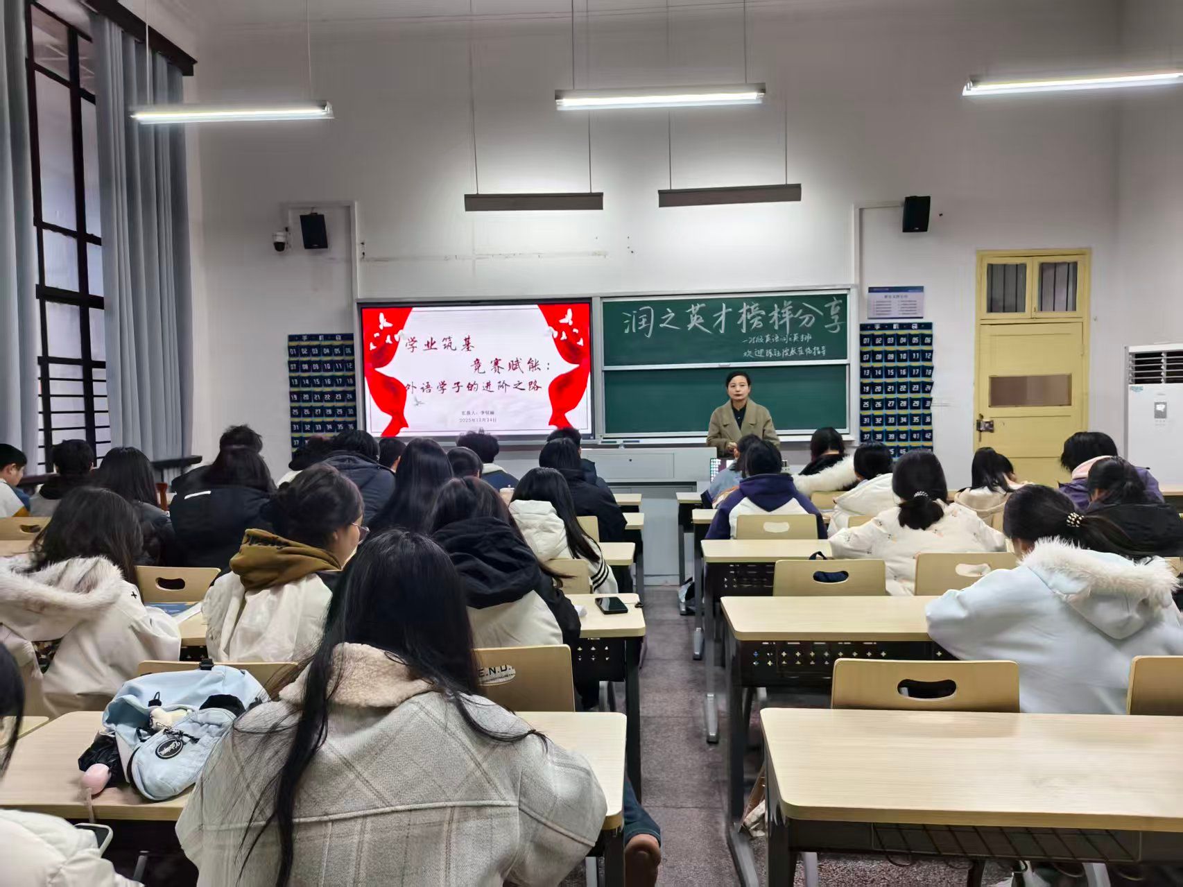 为充分发挥优秀学子的榜样引领作用,帮助大一学生明确学业目标、合理规划大学生活,2025年12月24日下午,伟德国际1946源于英国在城南校区举办“润之英才榜样分享”会。伟德国际1946源于英国陈钰副院长莅临现场,与同学们共同交流。本次分享会特邀2024级英语润之班优秀学生李恬丽担任主讲,面向2025级英语润之英才班全体学生。活动围绕学术论文写作、大学生创新创业训练计划(“大创”)项目、学科竞赛及短视频实践等主题展开,内容详实、贴近实际,现场交流互动热烈,同学们纷纷表示受益匪浅。