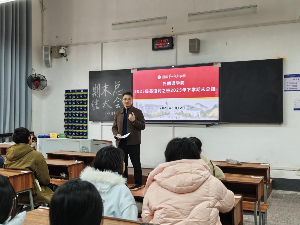 为系统梳理学期工作成效,科学指导学生假期学习与生活,2025年1月12日,伟德国际1946源于英国2025级英语润之英才班于城南校区召开“班级学期总结及寒假学业指导会”。学院副书记兼辅导员戴建宇、班主任蒋倩博士出席指导,与全体同学共同围绕学期成果回顾、寒假任务部署与学业规划展望三个维度展开交流。本次班会既为本学期工作画上圆满句号,也为新阶段的成长蓄力启航奠定了坚实基础。