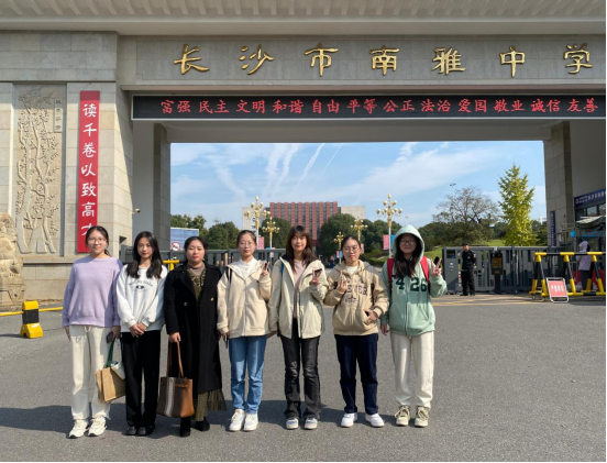 为落实践行我院“名师助长,优才优育”培养原则,切实提升师范生教学技能素养,2023年11月22日,我院22、23两个年级卓越班6名学生在22级班主任胡靓博士的带领下,赴长沙市南雅中学参加邓曙光英语名师工作室展示活动。
