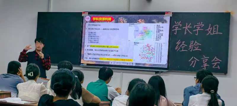 本次活动由21级英语5班的佘奕涓同学、22级英语润之英才班的朱雯茜、成铎文同学以及23级英语5班的樊荣同学担任主讲。他们分别介绍了“学科教学(英语)、外国语言学及应用语言学、英美文学与比较文学、翻译实践(口译)”四大专业方向的基本情况与个人学习经验。