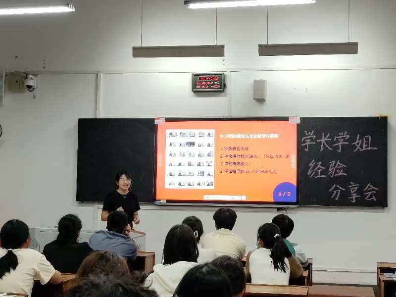 为帮助2024级英语润之英才班同学进一步深入了解实验班相关政策、专业方向及发展路径,进而为未来四年的学习生涯做好详细规划,2024年9月22日晚,学院安排在城南校区火炬楼301教室举办了2024级润之英才班“学长学姐说”活动。学工办主任刘洁老师、朋辈辅导员22级英语5班谢甜和23级英语润之英才班宋诗瑜,2024级润之英才班全体学生参加了此次活动。