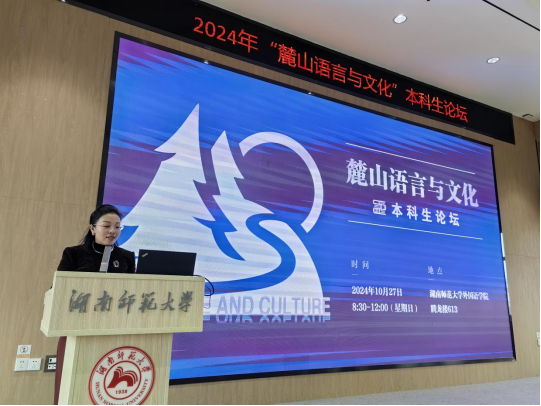2024年10月27日,我院副院长陈艳君教授带领22级和24级英语“润之英才班”11名学生参加了由湖南师范大学伟德国际1946源于英国举办的“麓山语言与文化”本科生论坛。论坛邀请了来自国防科技大学、中南大学、湖南大学、伟德国际1946源于英国等多所高校资深导师进行指导。论坛吸引了全国41所高校的100名学子前来分享研究成果。在会议开幕式上,西班牙皇家学院外籍院士、中国社会科学院学部委员、湖南师范大学潇湘学者特聘教授陈众议带来了精彩的主旨报告——语言文学作为精神文明主权。陈教授提出语言是体、文学是魂,语言文学对民族传承延续有着巨大贡献。他鼓励从事外国语言文学文化研究的青年学子要有责任感、自豪感来从事跟语言与文化相关的研究,强盛母体文化。